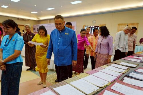 สำนักงานพัฒนาชุมชนอำเภอซับใหญ่ โดยนางวิรงรอง คำสอนพันธ์ พัฒนาการอำเภอซับใหญ่ พร้อมด้วย นางสาวศรสวรรค์ งานไว นักวิชาการพัฒนาชุมชนปฏิบัติการ และกลุ่มเป้าหมาย นำผ้าลายพระราชทานเข้าร่วมประกวดด้วย